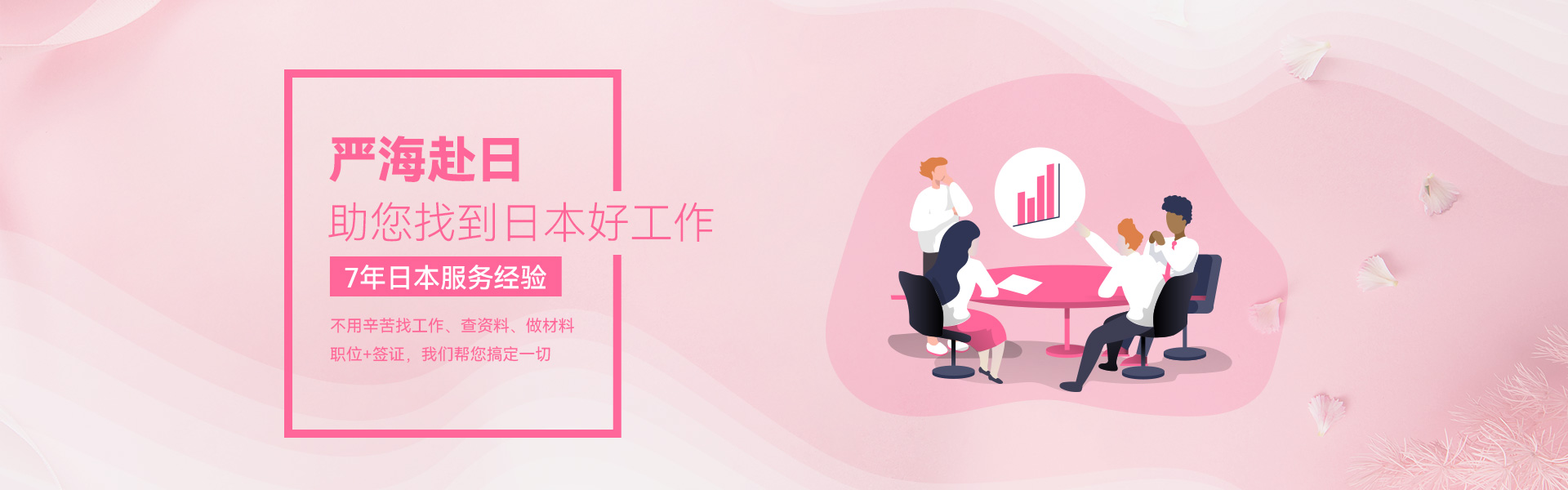 嚴海赴日(workinjapan.cn)是專業的赴日工作服務平臺,是大連嚴海人力資源有限公司旗下品牌。主要提供日本就職(工作簽)/日本留學(半工半讀),等最新工作信息和資訊,為想赴日工作的小伙伴們提供專業的、一對一的咨詢,為您職業生涯規(guī)劃、永居辦理、在日期間換職、轉換簽證等方面提供支援。